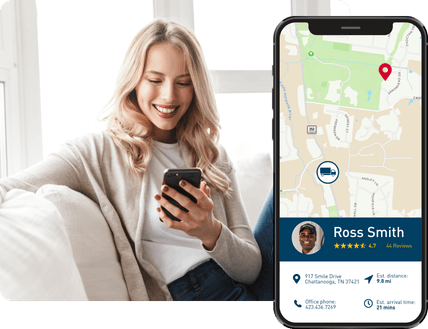 When our technician is headed your way, we’ll send you their photo, exact arrival time, and a link you can click to track their progress to your door.